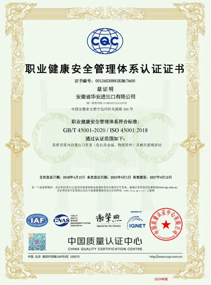 • 职业健康安全管理体系认证证书