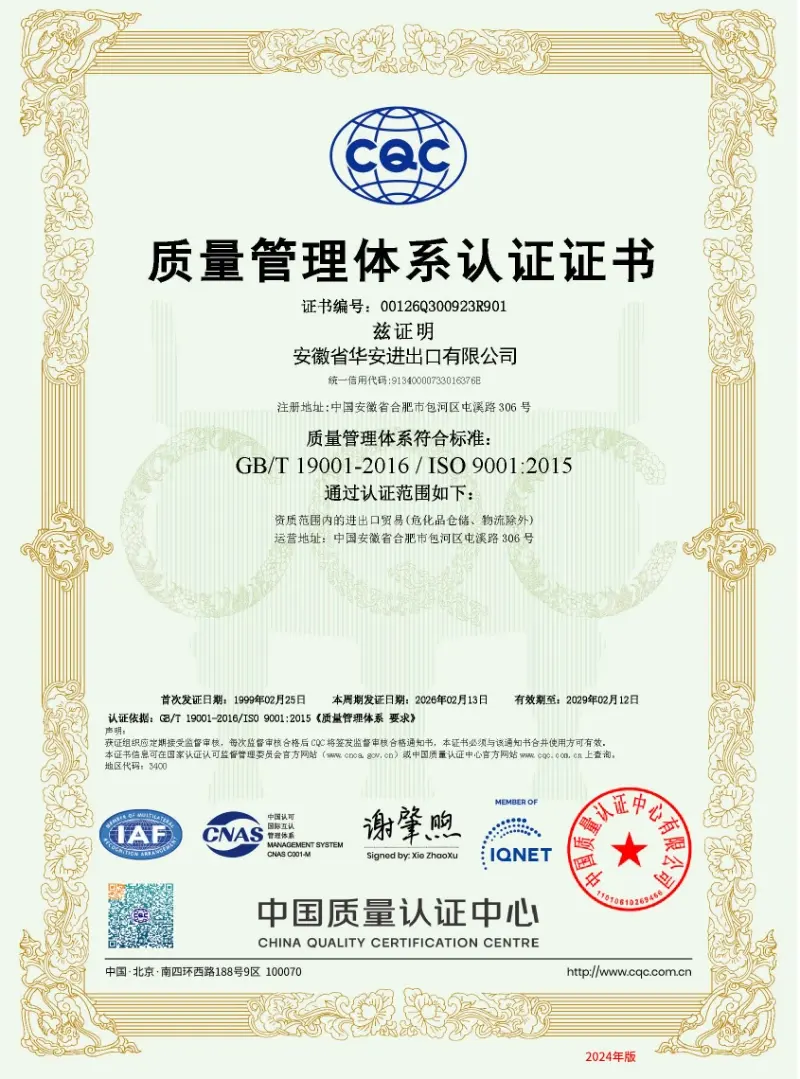 • 质量管理体系证书